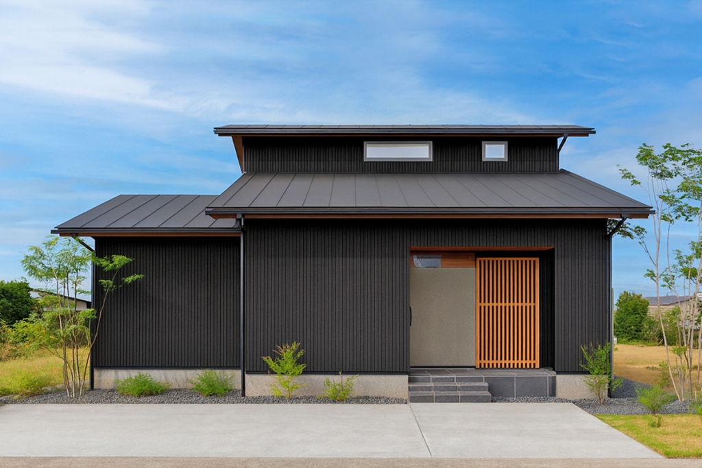 外観はブラックのガルバリウム鋼板。