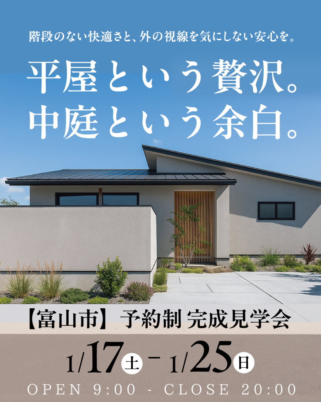 そんな31.5坪の平屋が、富山市で9日間限定で公開いたします。