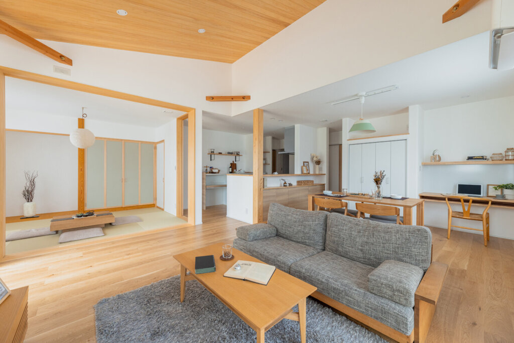 21.8帖のゆったりとしたLDKに、和室の奥には「隠れ家のような書斎スペース」を配置。