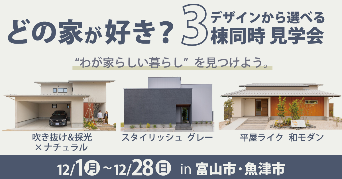 富山市西荒屋、富山市下冨居、魚津市吉島(お好きな会場を選べます)