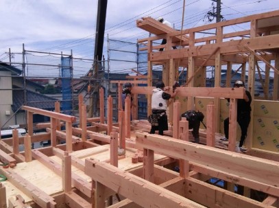 雨が降ったり止んだりの梅雨時期ではありますが、建築現場では着々と工事が進んでおります。