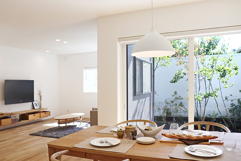 視線を気にすることなく、中庭からの光・風を取り入れ居心地の良い空間を実現しました。
