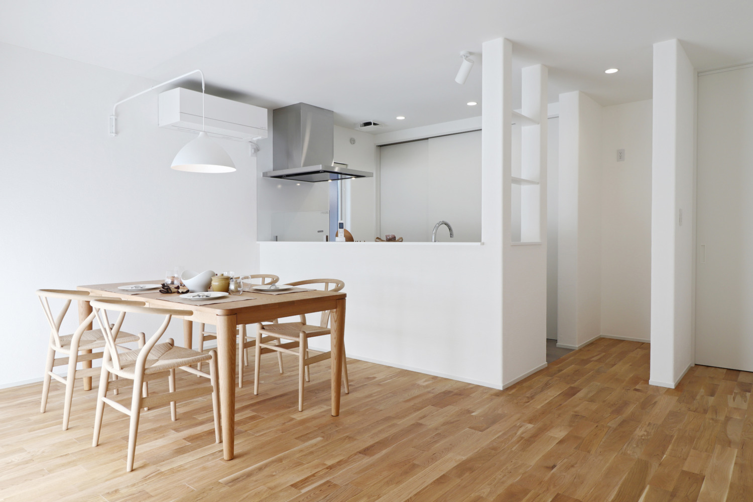 白壁に自然の緑が映える、おしゃれなダイニングキッチンは生活の質を高めてくれます。