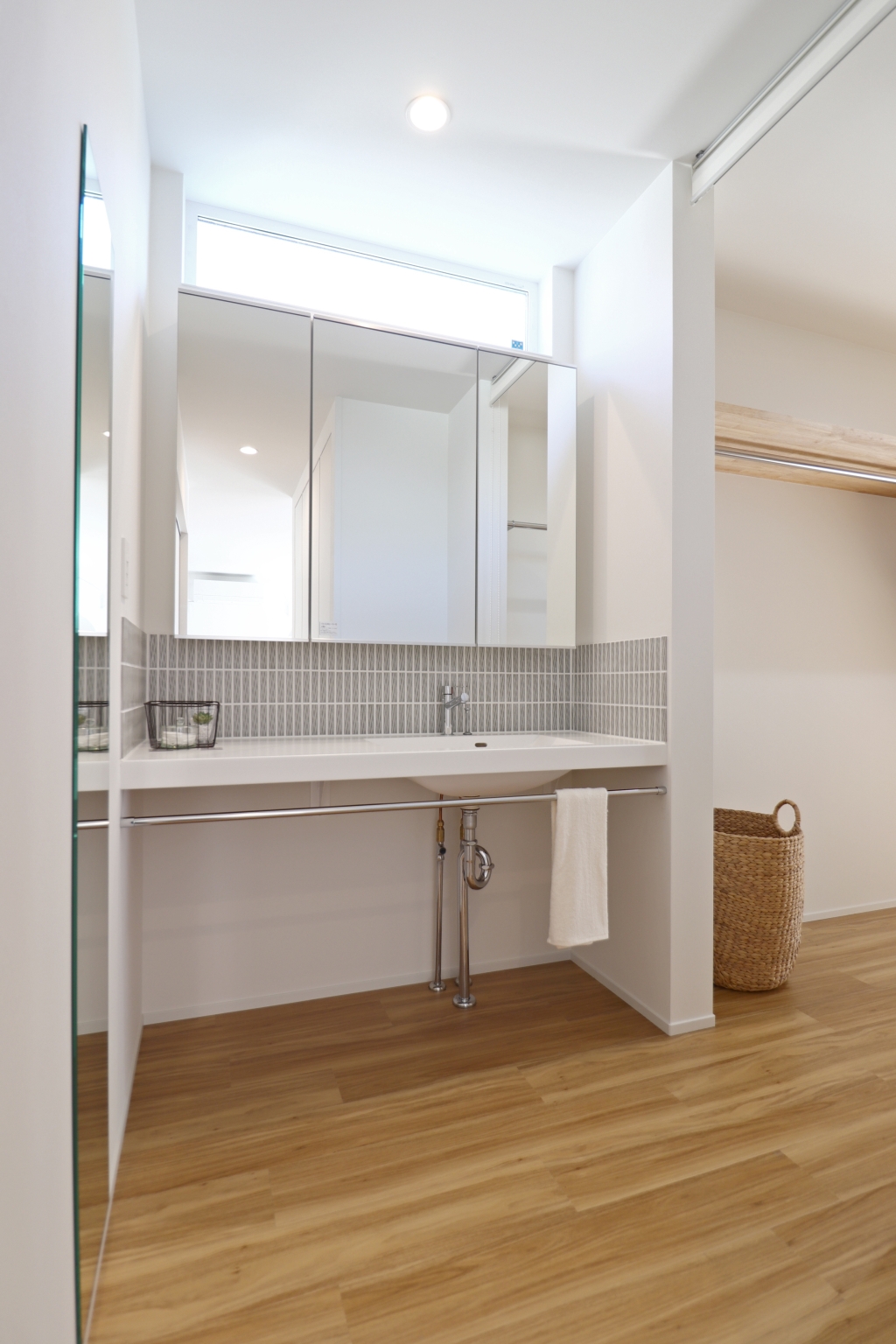 ランドリールームまでウォークインクローゼットを通って一直線につながっており、洗う・干す・しまうまでが最短距離でできる機能的な設計となっています。