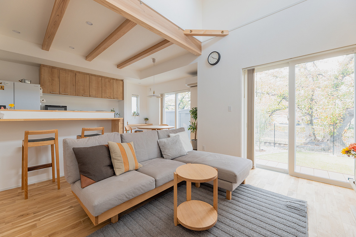 リビングと庭をつなぐウッドデッキは、屋外と屋内を自然に繋ぐ役割を果たしています。
