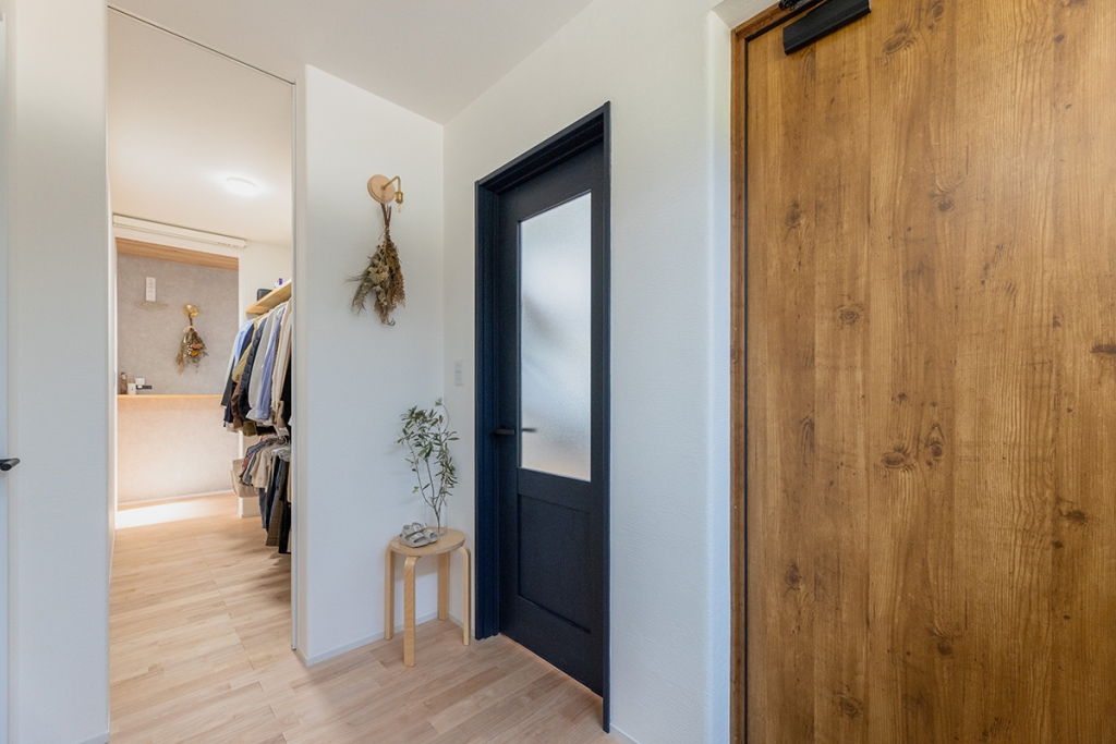 洗面やトイレのタイルなど、こだわりの造作家具が随所に散りばめられた住まいは、「どこにいても私たちの『好き』が視界に入るので、家にいるだけで楽しくなります」と奥様は嬉しそうに話します。