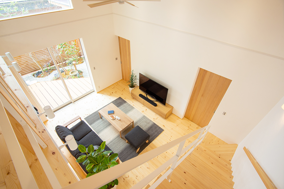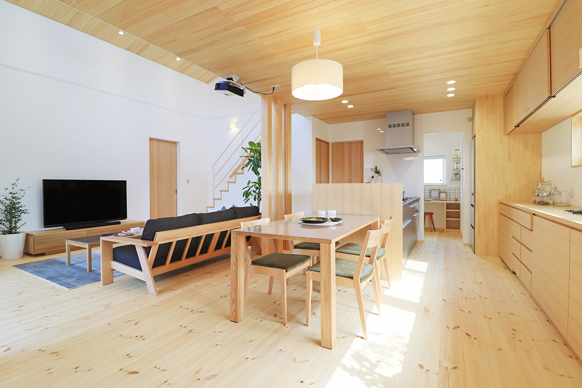生活の中でリビングを通りやすい動線になっているので、家族の気配を感じやすい温かみのある住まいです。