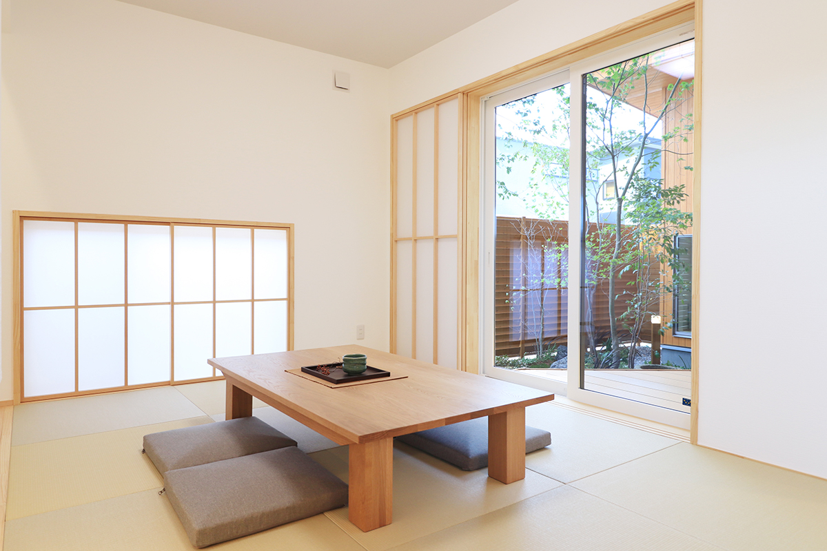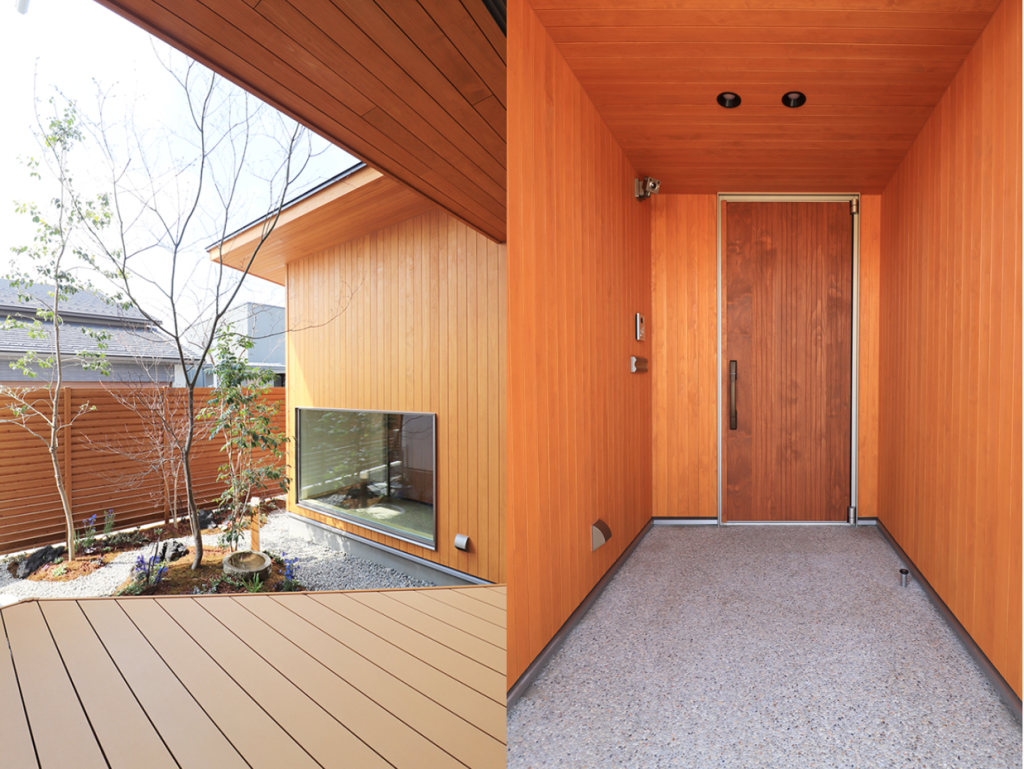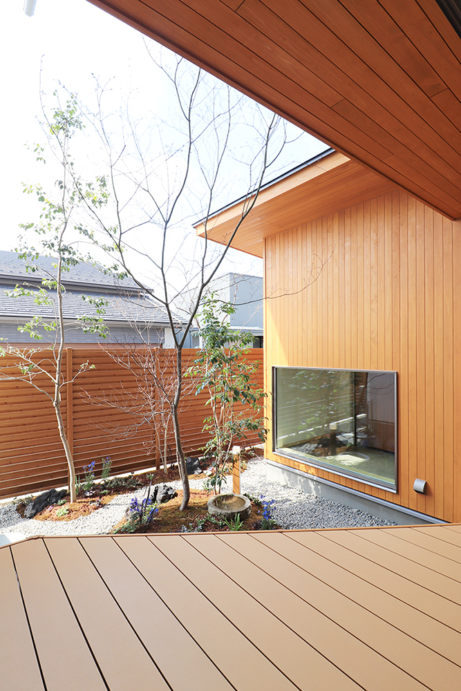 住宅街に建てられたお住まい。近隣の視線を気にすることなく、中庭から光と風を取り入れ心地よい開放的な空間を実現しました。