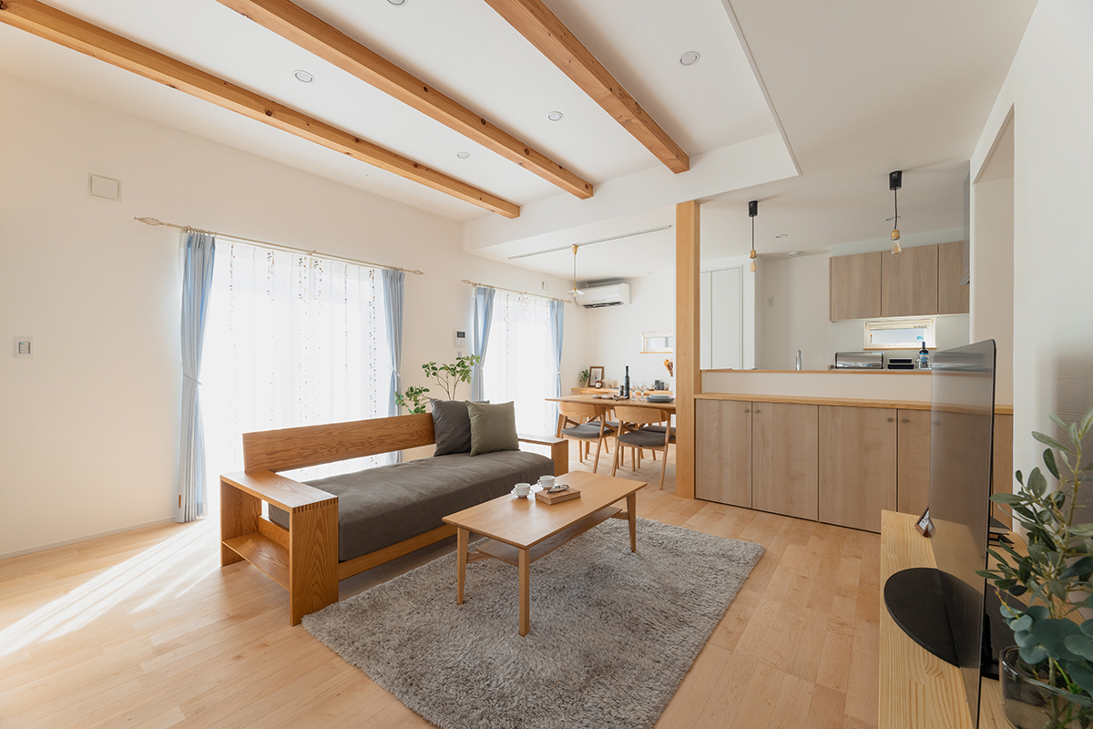 リビングと自然につながる空間は、家族がほっと一息つける癒しのスペースに。シンプルながらも上質な雰囲気が、暮らしに豊かな彩りを添えます。