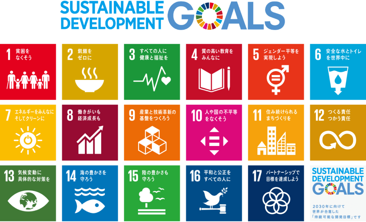 持続可能な開発目標(SDGs)とは、2001年に策定されたミレニアム開発目標(MDGs)の後継として、2015年の国連サミットで採択された「持続可能な開発のための2030アジェンダ」にて記載された、2030年までに持続可能でよりよい世界を目指す国際目標です。